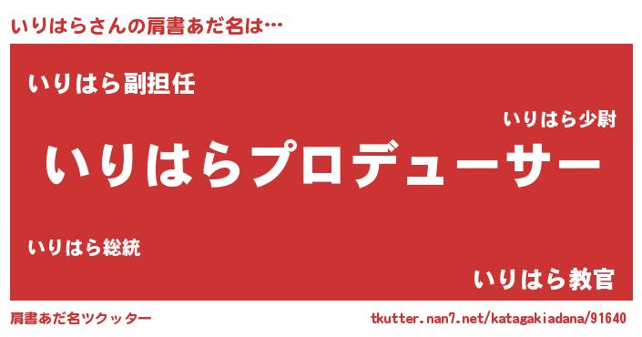 | 意味不明あだ名 | 『永久保存いりはら』『自称いりはら』 |