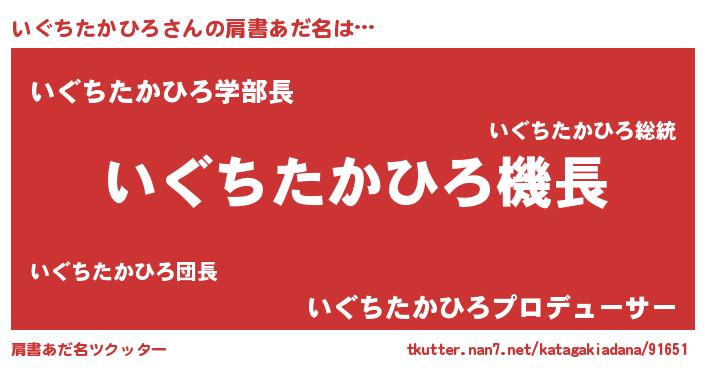 | 男性向けラノベタイトル風あだ名 | 『うちのいぐちたかひろが世界を掌握している!』 |