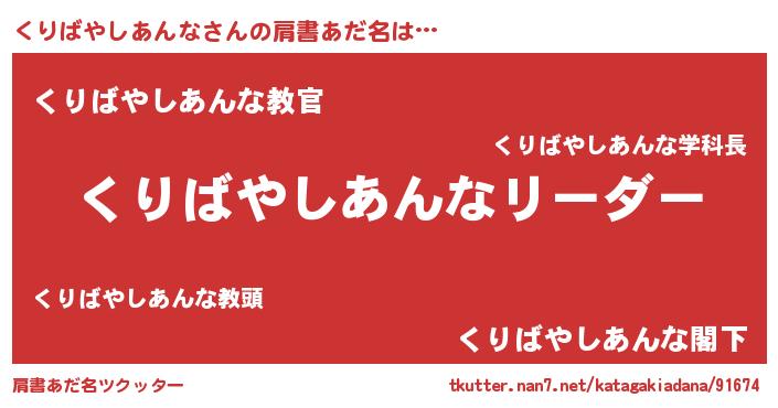 | 男性向けラノベタイトル風あだ名 | 『くりばやしあんなの嫁は女の子じゃないと思った?』 |
