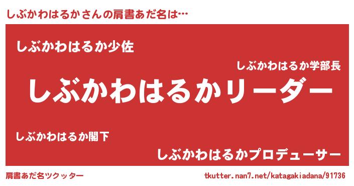 | 意味不明あだ名 | 『とにかく怪しいしぶかわはるか』 |