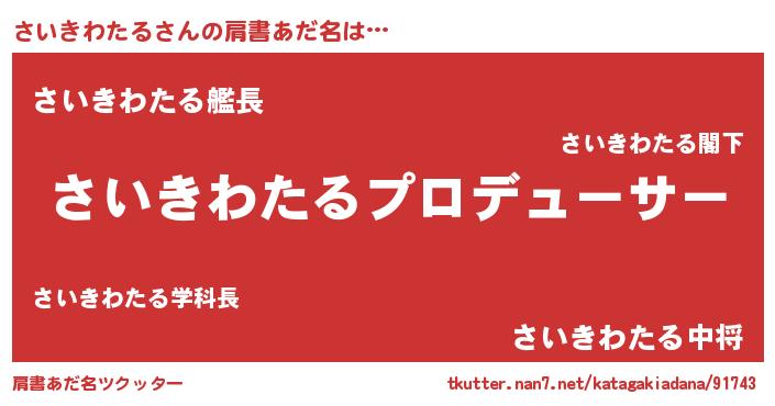 | 男性向けラノベタイトル風あだ名 | 『さいきわたるに滅ぼされるだけの簡単なお仕事です』 |