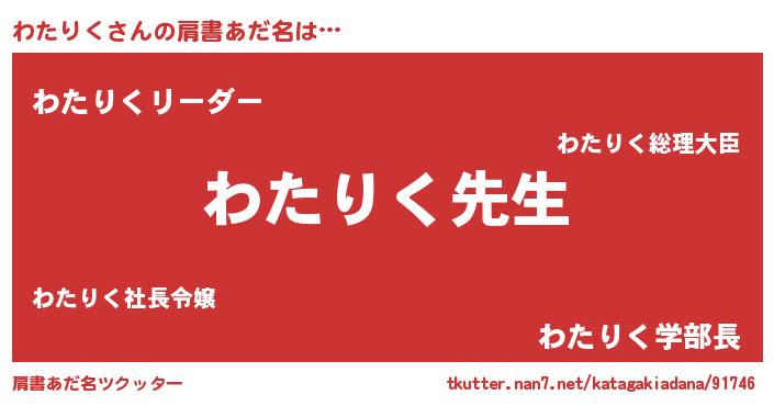 | ヘコむあだ名 | 『わたりく(小並感)』『わたっちょ』 |