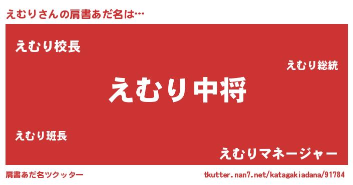 | 意味不明あだ名 | 『なめこ科えむり属』『永久保存えむり』 |