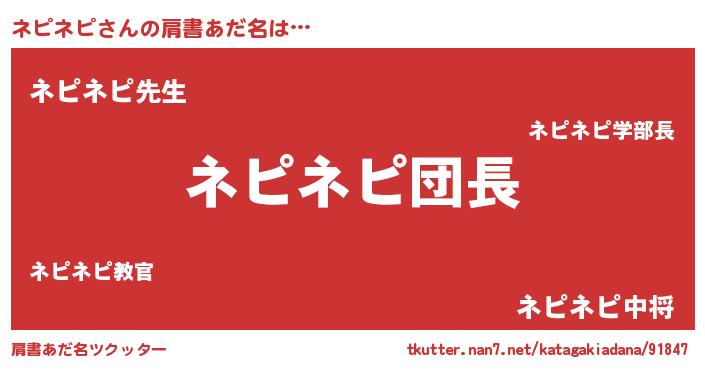 | ヒーロー風カッコイイあだ名 | 『黄金騎士ネピ』『ネオネピネピ』 |