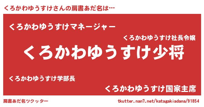 | 男性向けラノベタイトル風あだ名 | 『転生したらくろかわゆうすけだった件』 |