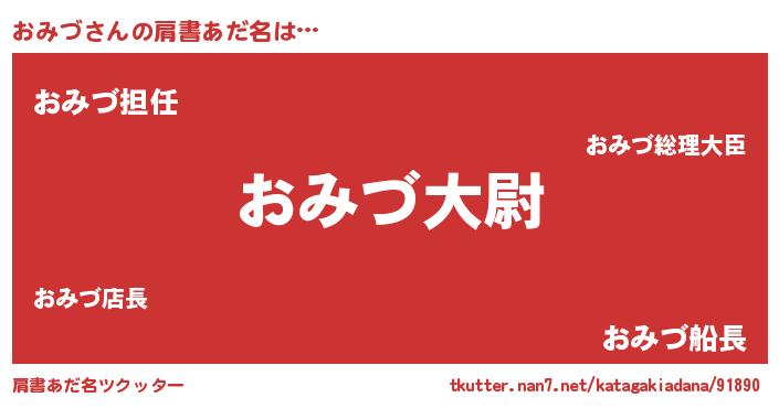 | 男性向けラノベタイトル風あだ名 | 『転生したらおみづだった件』 |