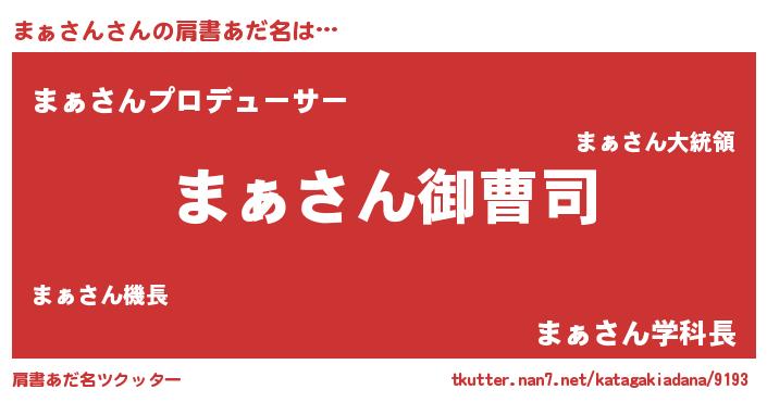 | ヒーロー風カッコイイあだ名 | 『スーパーマァサン』『愛の使者まぁさん』 |