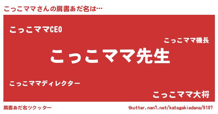| ヒーロー風カッコイイあだ名 | 『ネオコッコママ』『スーパーコッコママ』 |