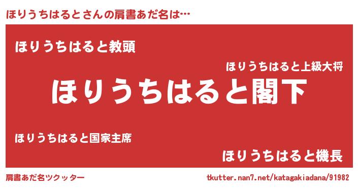 | 男性向けラノベタイトル風あだ名 | 『Re:ほりうちはるとから始める異世界生活』 |