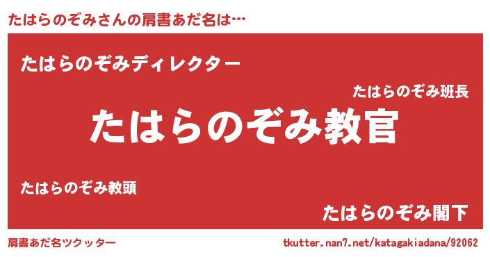 | 男性向けラノベタイトル風あだ名 | 『この素晴らしい世界にたはらのぞみを!』 |