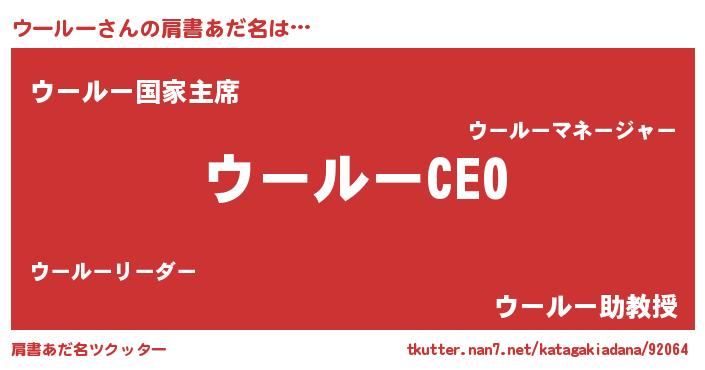 | ポケモン風あだ名 | 『ウーチュウ』『ウールダネ』 |