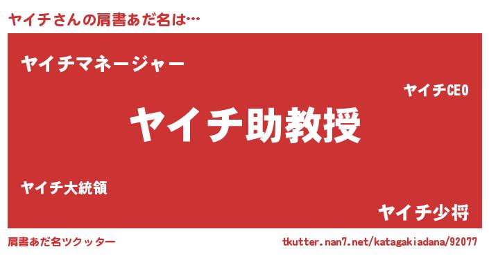 | ヒーロー風カッコイイあだ名 | 『正義の使者ヤイチ』『スーパーヤイチ』 |