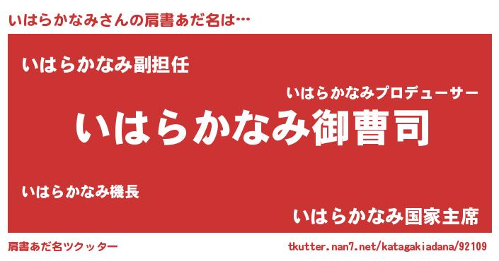 | 男性向けラノベタイトル風あだ名 | 『イハラカナミアートオンライン』 |