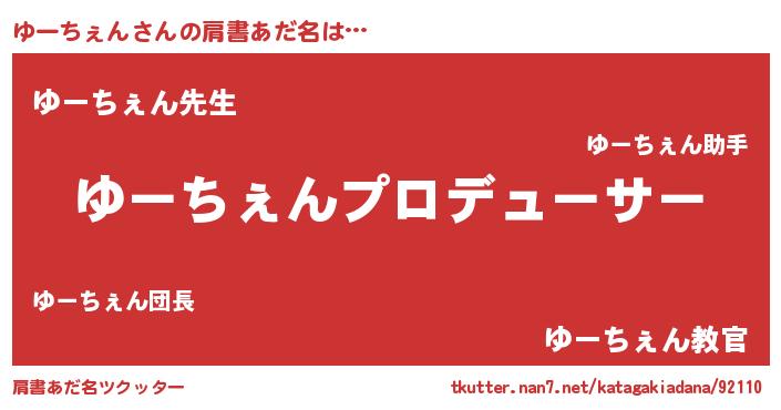 | ヘコむあだ名 | 『ゆーちぇん(遠い目)』『ゆーを』 |