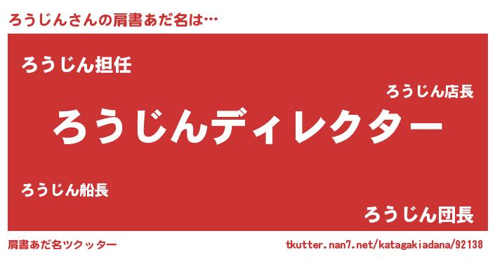 | ヘコむあだ名 | 『ろうじん(笑)』『ろうっちょ』 |