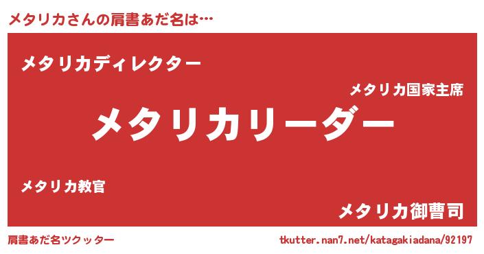 | 意味不明あだ名 | 『とにかく怪しいメタリカ』 |