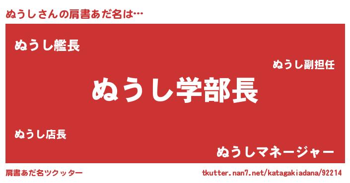 | ヒーロー風カッコイイあだ名 | 『正義の使者ぬうし』『ネオヌウシ』 |