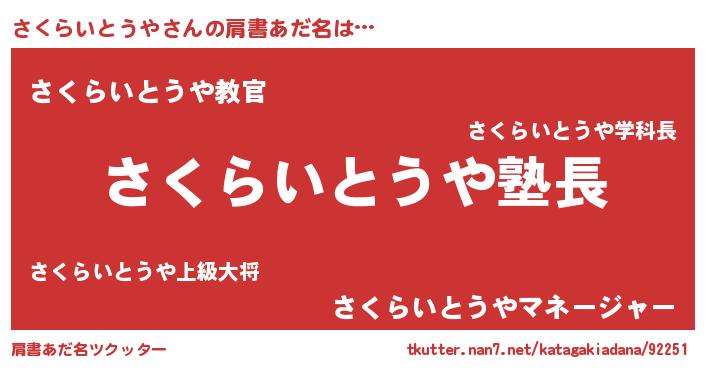 | 意味不明あだ名 | 『とにかく怪しいさくらいとうや』 |