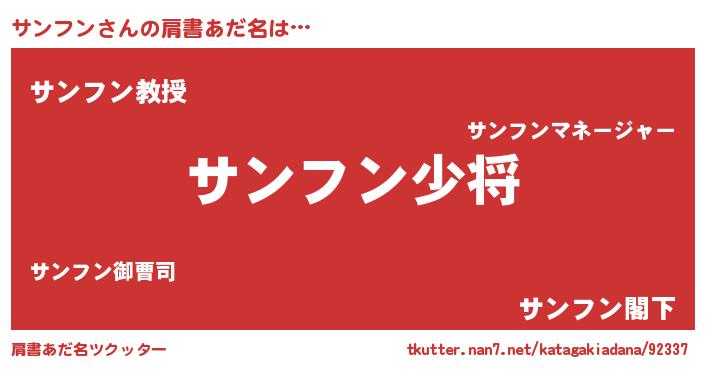 | 男性向けラノベタイトル風あだ名 | 『サンフン~年齢イコール彼女いない歴の魔法使い~』 |