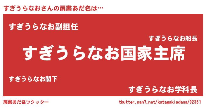 | ポケモン風あだ名 | 『スギウダネ』『ゼニスギ』 |