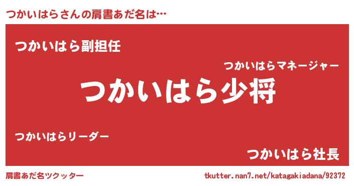 | 男性向けラノベタイトル風あだ名 | 『つかいはら~年齢イコール彼女いない歴の魔法使い~』 |