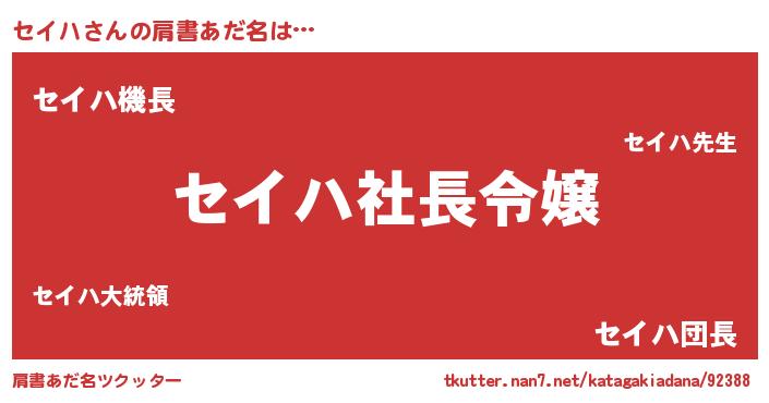 | 男性向けラノベタイトル風あだ名 | 『セイハアートオンライン』 |