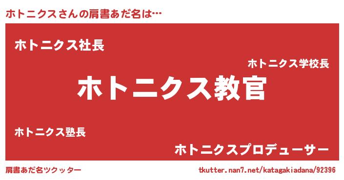 | 意味不明あだ名 | 『住所不定無職ホトニクス(1歳)』 |