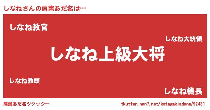 | 欧米人風あだ名 | 『トリンドルしなね』『ダレノガレしなね』 |