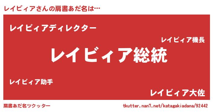 | 男性向けラノベタイトル風あだ名 | 『Re:レイビィアから始める異世界生活』 |