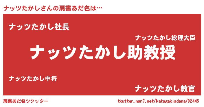 | 男性向けラノベタイトル風あだ名 | 『ノーゲーム・ノーナッツタカシ』 |
