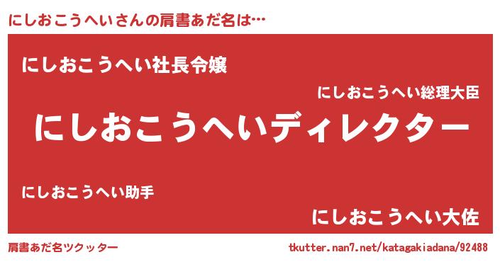 | 男性向けラノベタイトル風あだ名 | 『にしおこうへいに滅ぼされるだけの簡単なお仕事です』 |