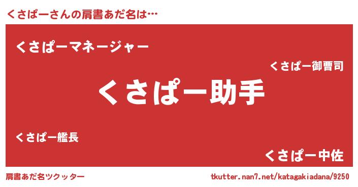 | ヒーロー風カッコイイあだ名 | 『愛の使者くさぱー』『スーパークサパー』 |