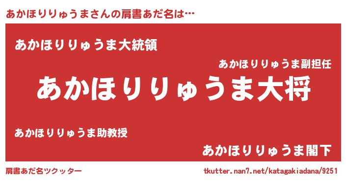 | 男性向けラノベタイトル風あだ名 | 『転生したらあかほりりゅうまだった件』 |