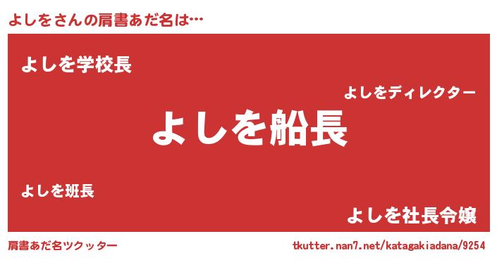 | 男性向けラノベタイトル風あだ名 | 『うちのよしをが世界を掌握している!』 |