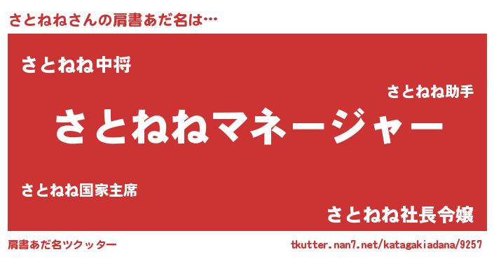 | 男性向けラノベタイトル風あだ名 | 『さとねねに滅ぼされるだけの簡単なお仕事です』 |