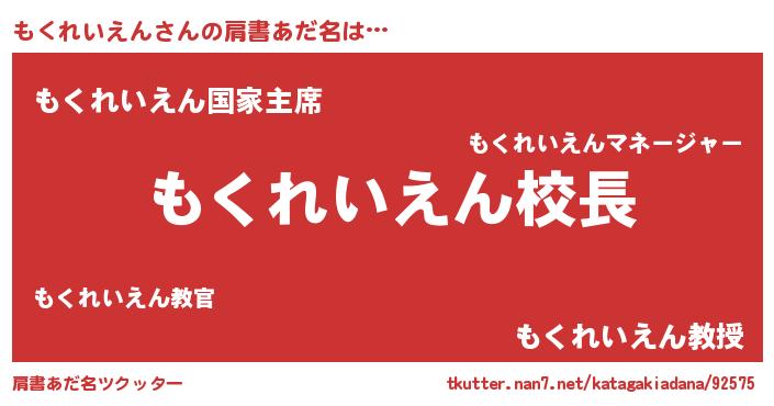 | 男性向けラノベタイトル風あだ名 | 『もくれいえんという概念が存在しない退屈な世界 』 |