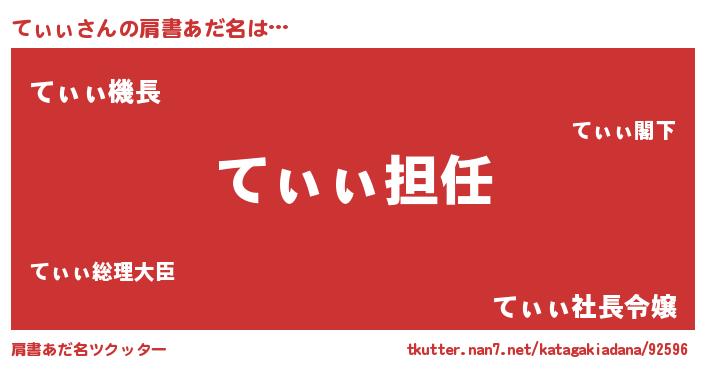 | ヘコむあだ名 | 『てぃぃ(苦笑)』『てぃもー』 |