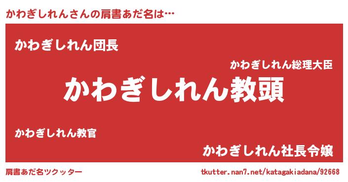 | 意味不明あだ名 | 『永久保存かわぎしれん』 |