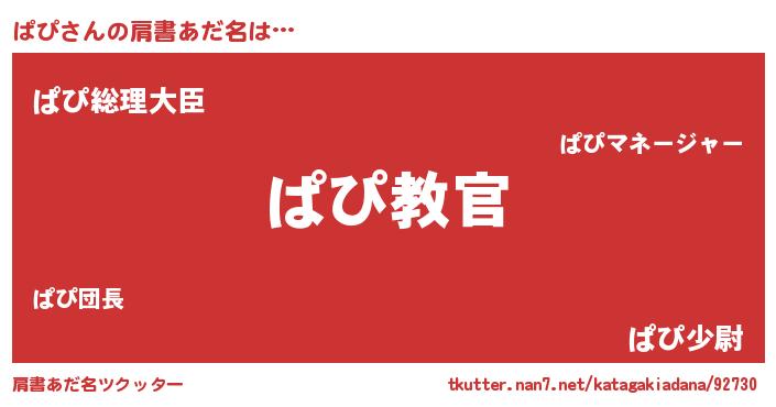 | ヒーロー風カッコイイあだ名 | 『仮面パピダー』『ウルトラぱぴマン』 |