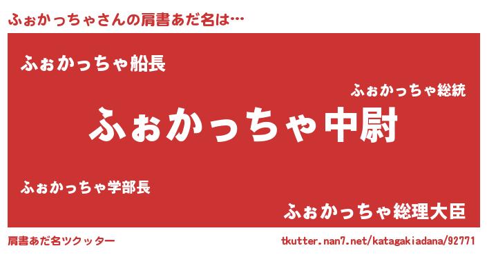 | 女子向けラノベタイトル風あだ名 | 『ふぉかっちゃの玉の輿計画!』 |