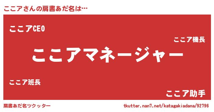 | ヒーロー風カッコイイあだ名 | 『スーパーココア』『正義の使者ここア』 |