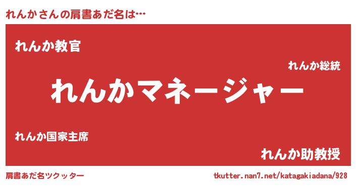 | 意味不明あだ名 | 『住所不定無職れんか(13歳)』『自称れんか』 |