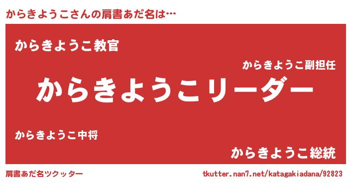 | 意味不明あだ名 | 『とにかく怪しいからきようこ』 |