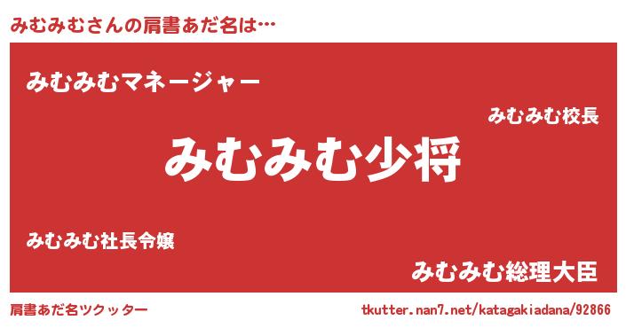 | ヒーロー風カッコイイあだ名 | 『ウルトラみむみむマン』『ネオミムミム』 |