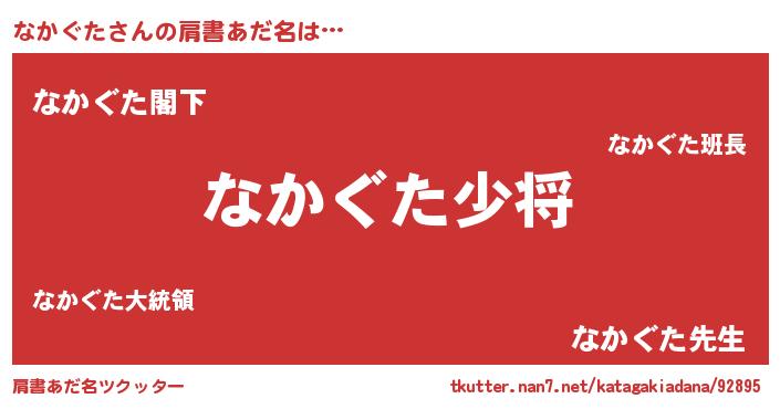 | 男性向けラノベタイトル風あだ名 | 『転生したらなかぐただった件』 |