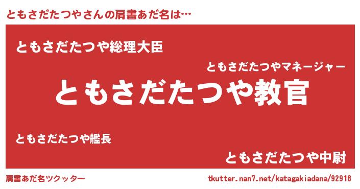 | ポケモン風あだ名 | 『トーモイ』『トモサダネ』 |