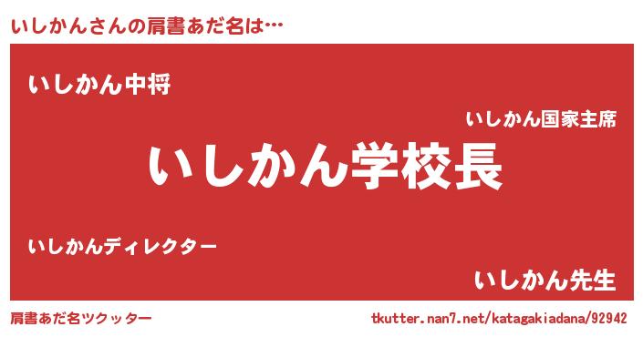 | ヘコむあだ名 | 『いしかん(爆)』『豆乳』『いしにー』 |