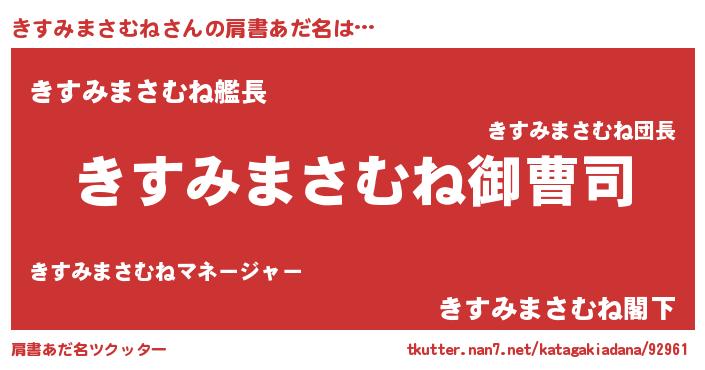 | 男性向けラノベタイトル風あだ名 | 『きすみまさむねの憂鬱』 |