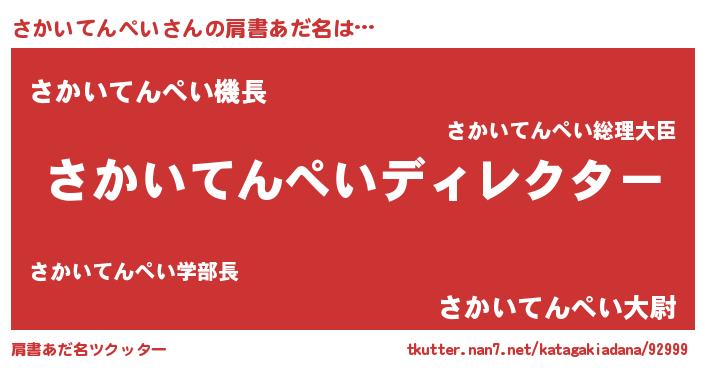 | 男性向けラノベタイトル風あだ名 | 『はたらくさかいてんぺいさま!』 |