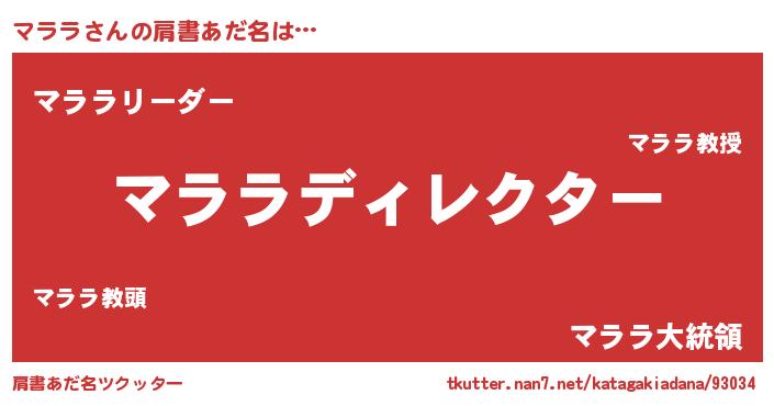 | 女子向けラノベタイトル風あだ名 | 『横柄マララと宰相陛下』『マララ恋絵巻』 |